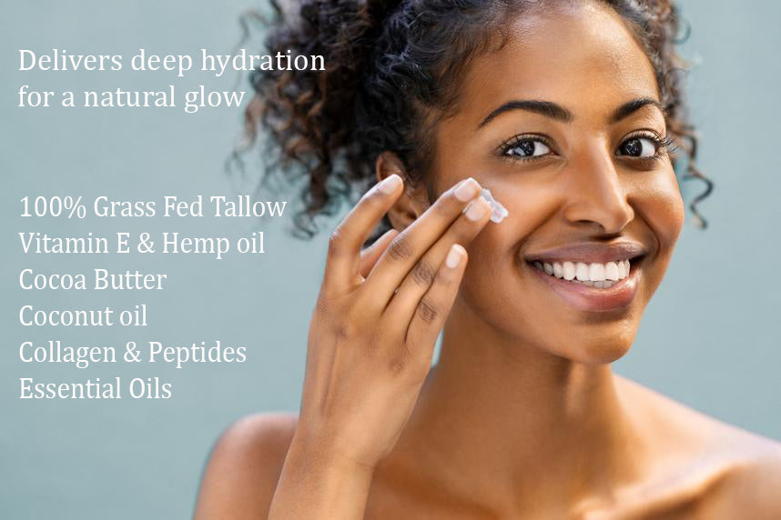 Indulge in the purity of nature with Blonde Provisions’ Premium Whipped Tallow Cream—a luxurious, small-batch blend, crafted from 100% grass-fed beef tallow and enriched with skin-loving botanicals & Peptides. Each 4 oz jar is hand-whipped to a silky texture that melts effortlessly into skin, delivering deep hydration and a radiant glow.
