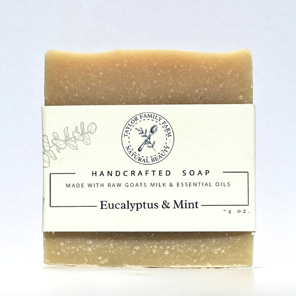 Breathe deep and reset with Eucalyptus & Mint, a handcrafted bar soap designed to turn your shower into a spa-like escape. Made with our own hand-milked goat’s milk, this soap creates a rich, creamy lather that cleanses and moisturizes while the cool, crisp blend of eucalyptus and peppermint essential oils fills the air with refreshing aromatherapy.