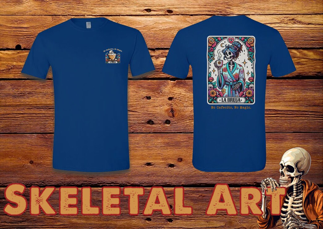 La Bruja coffee witch tarot style t-shirt with skeleton